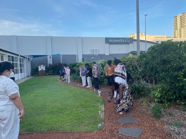 The day was marked with the releasing of white bouganvillea flowers in the peace garden at the Uniting Church in Smith Street, which holds much of the memorabilia of the Fujita family's time in the NT.